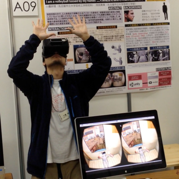 - 小鷹研理・信田勇貴:「I am a volleyball tossed by my hands: 二人称視点を採用した幽体離脱の誘発」, 第20回情報処理学会シンポジウム・インタラクション2016, 科学技術館, 2016.3 [PDF]
