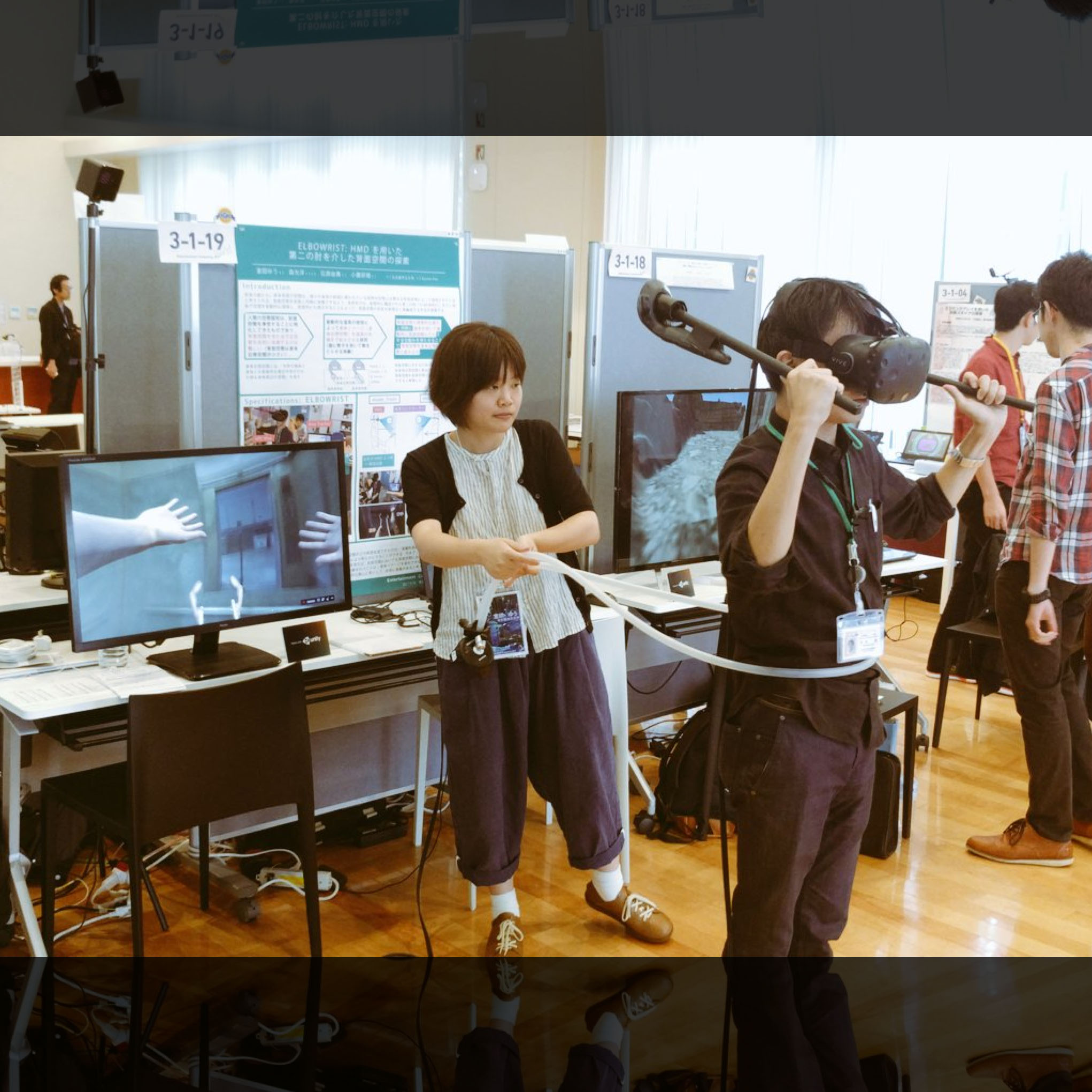 - 室田ゆう, 森光洋, 石原由貴, 小鷹研理 :ELBOWRIST: HMDを用いた第二の肘を介した背面空間の探索, 第46回EC研究発表会, 2017.12.22, 口頭発表(ノート発表, EC2017の振替)