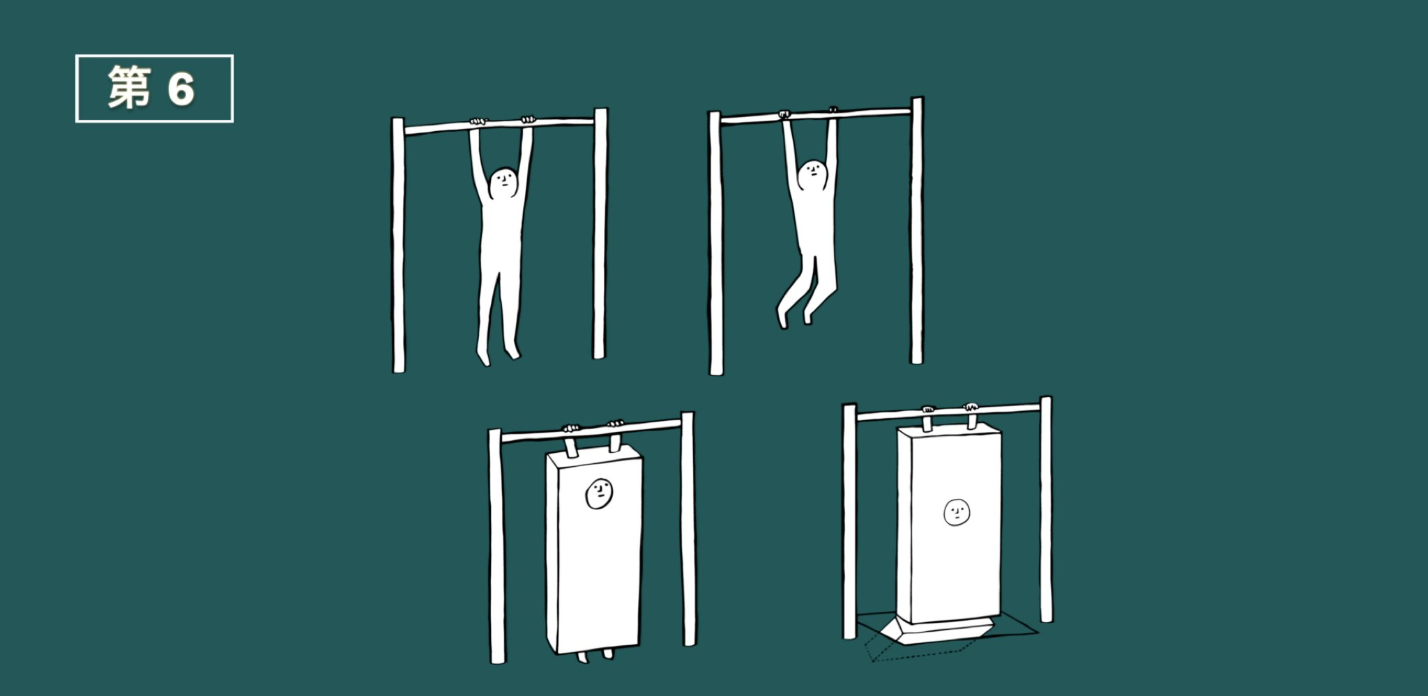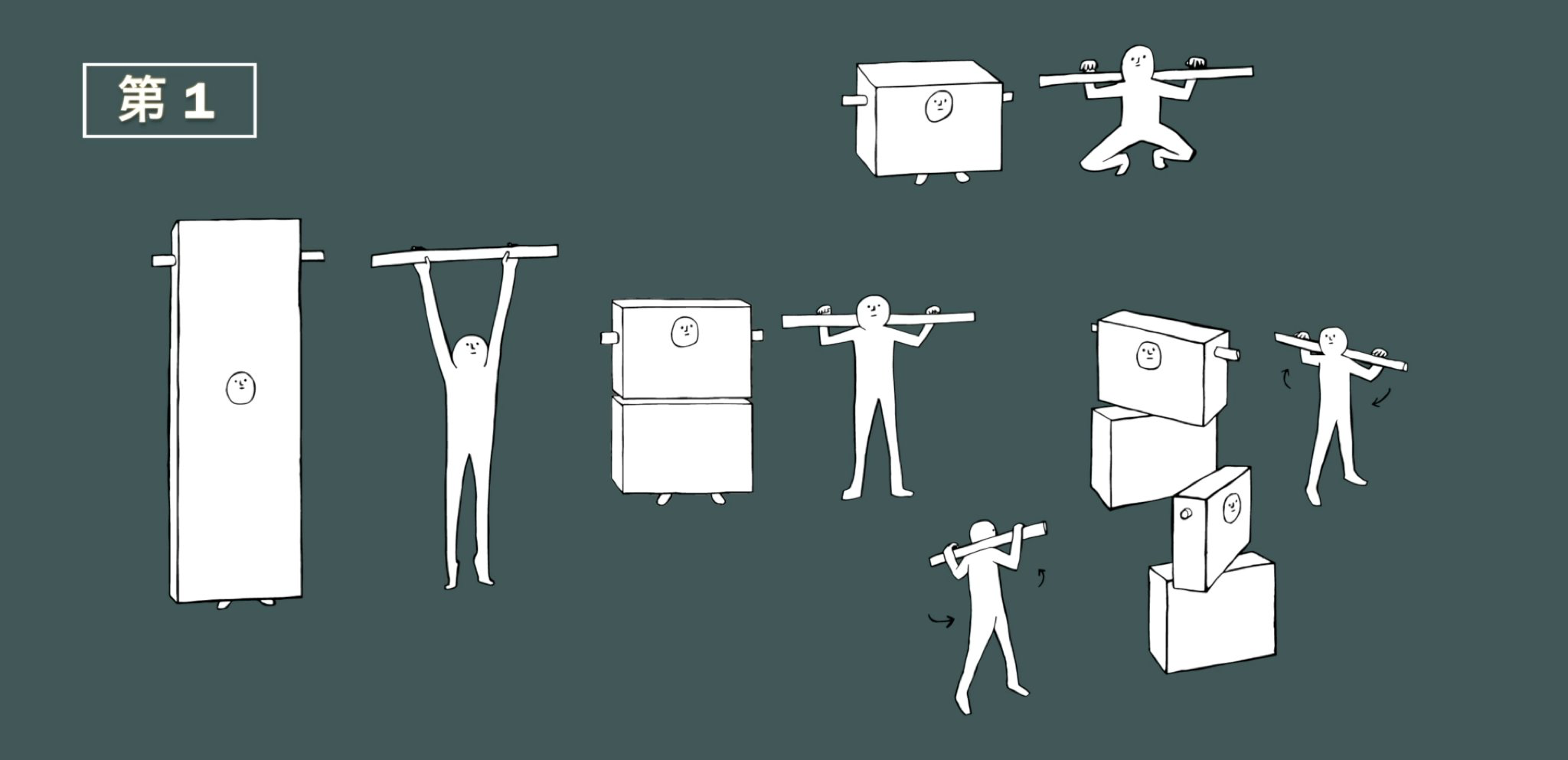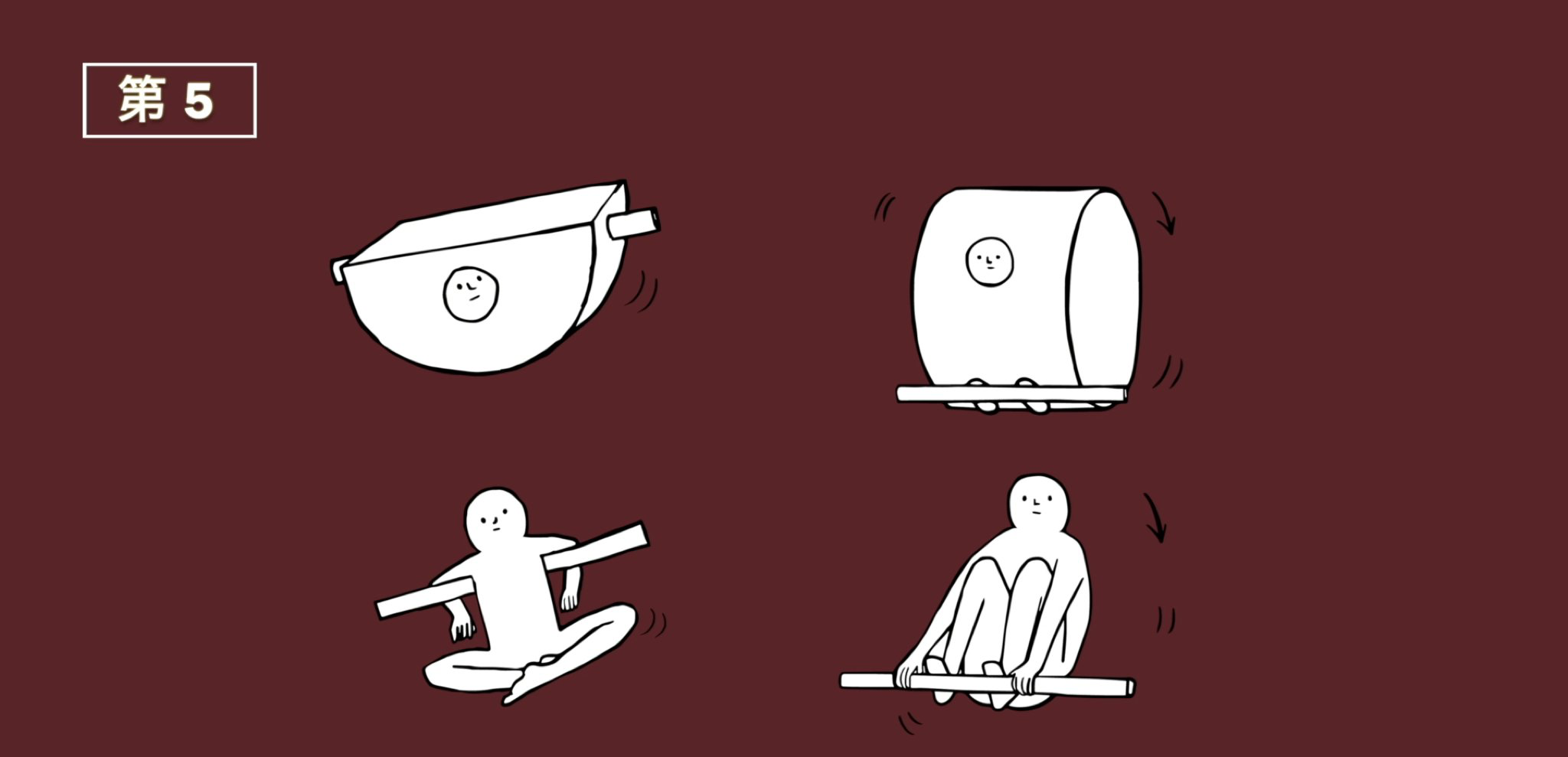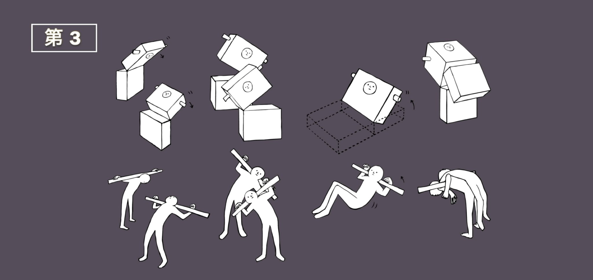 もう明日展示なので続けていきます。#人体の幾何学的転回予告 その5は、キュービック体操シリーズを完結させる「第5:曲面接地」と「第6:振り子」の体験映像をどうぞ。制御の次元を落とすことによって、かえって、新たな運動形態を手にいれる、この逆説こそが幾何学的転回のおもしろさなのです。 pic.twitter.com/ZdvEaIuzX9