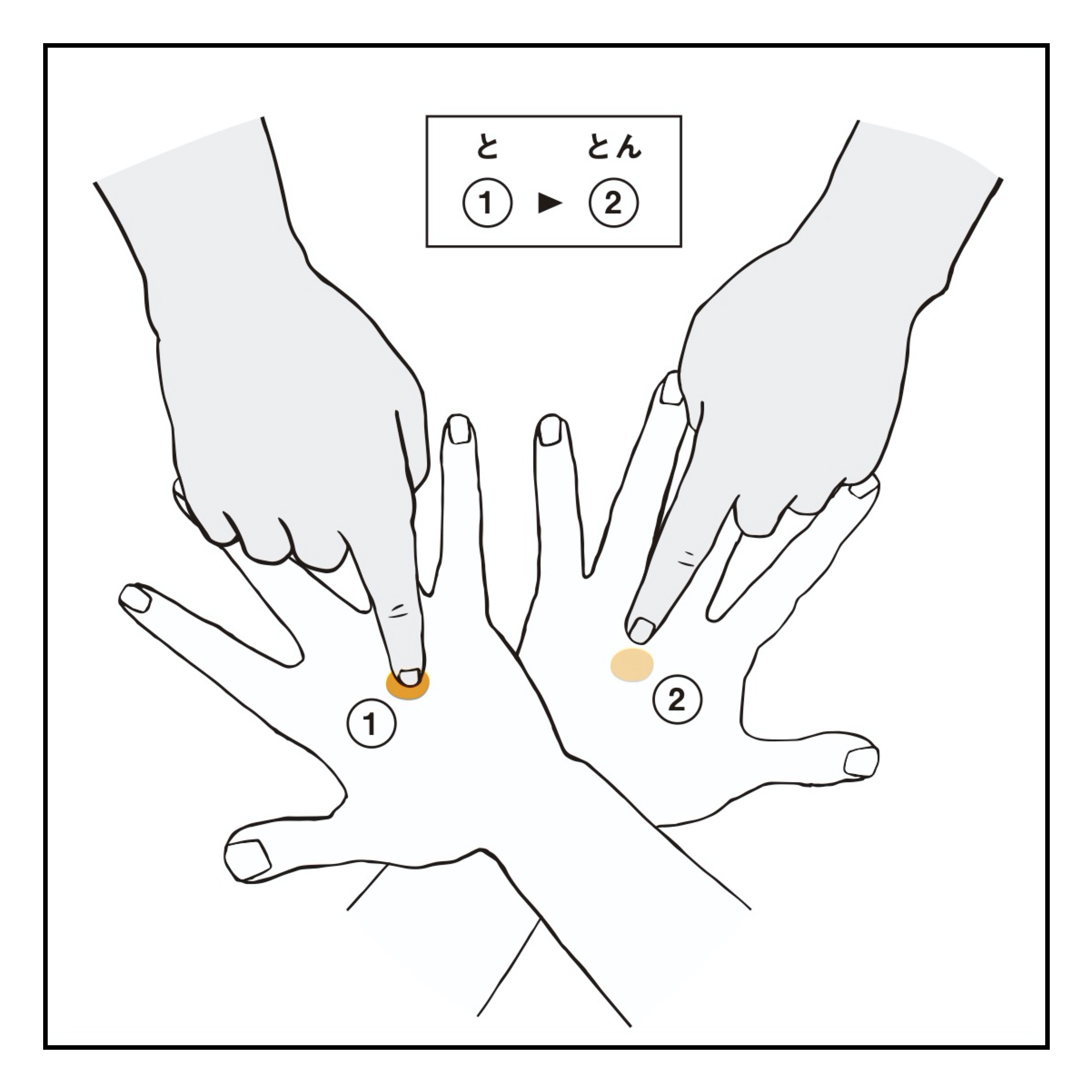 3. 甲は、乙の両手の甲を、一方の手が先となるように「ととん」と連打する。