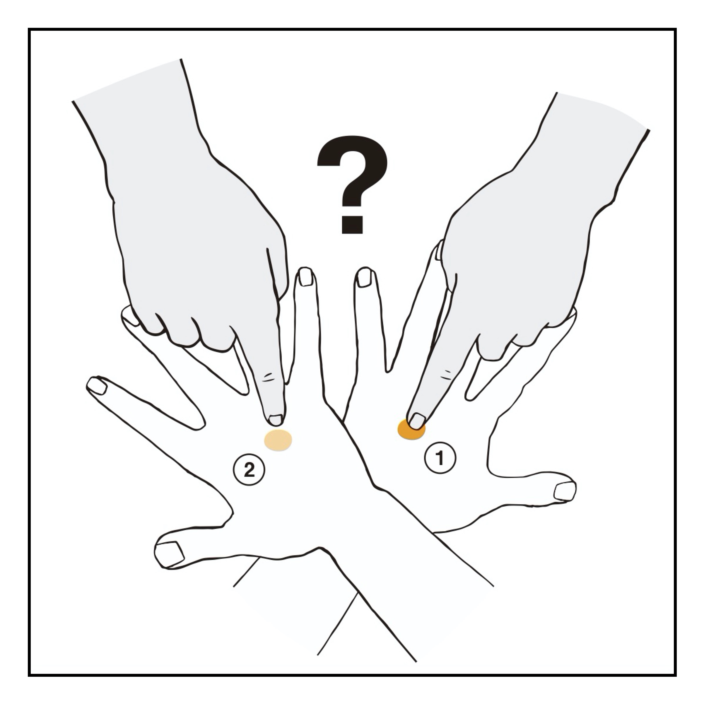 4. 乙がどちらの手を先に触られたのかがわからなくなれば陽性。